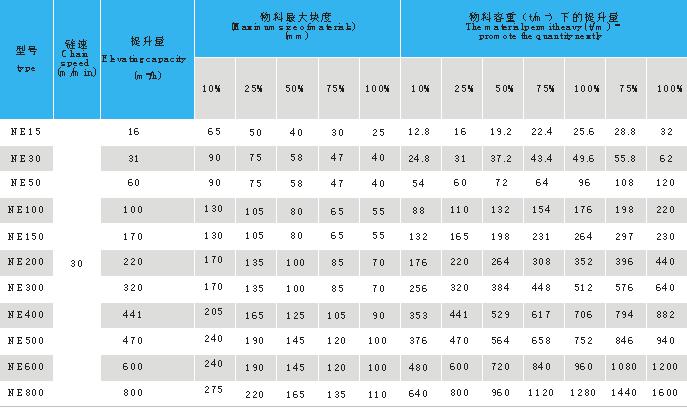 NE系列板鏈式提升機共有11種型號:NE15、NE30、NE50、NE100、NE150、NE200、NE300、NE400、NE500、NE600、NE800。